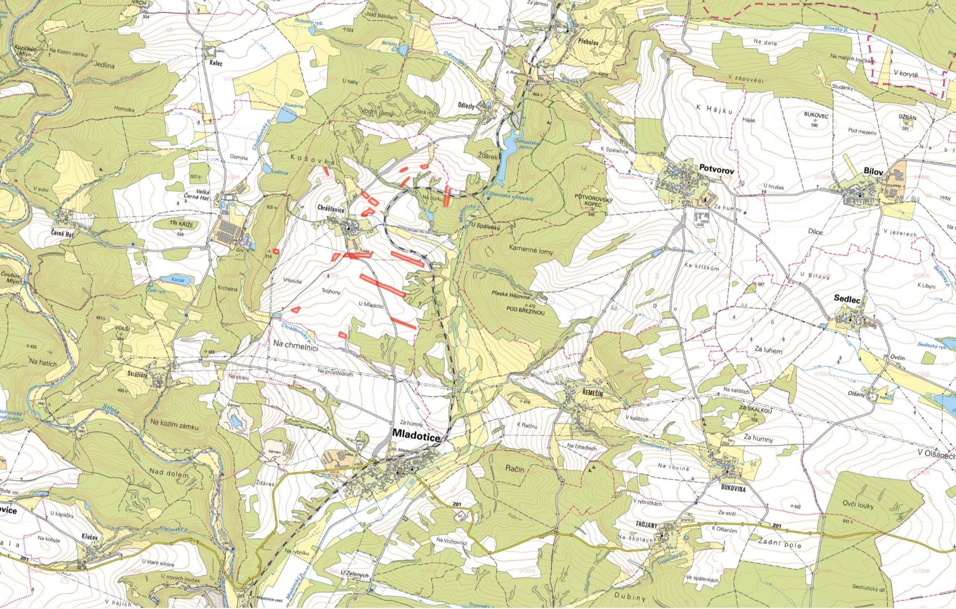 Soubor zemědělských a lesních pozemků u obce Strážiště